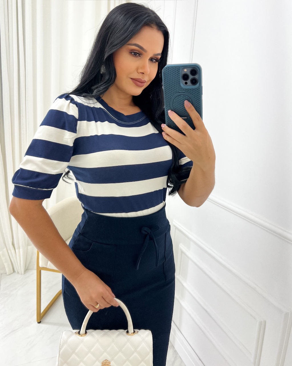 Blusa Manga Princesa Tecido Viscolaycra Azul Marinho