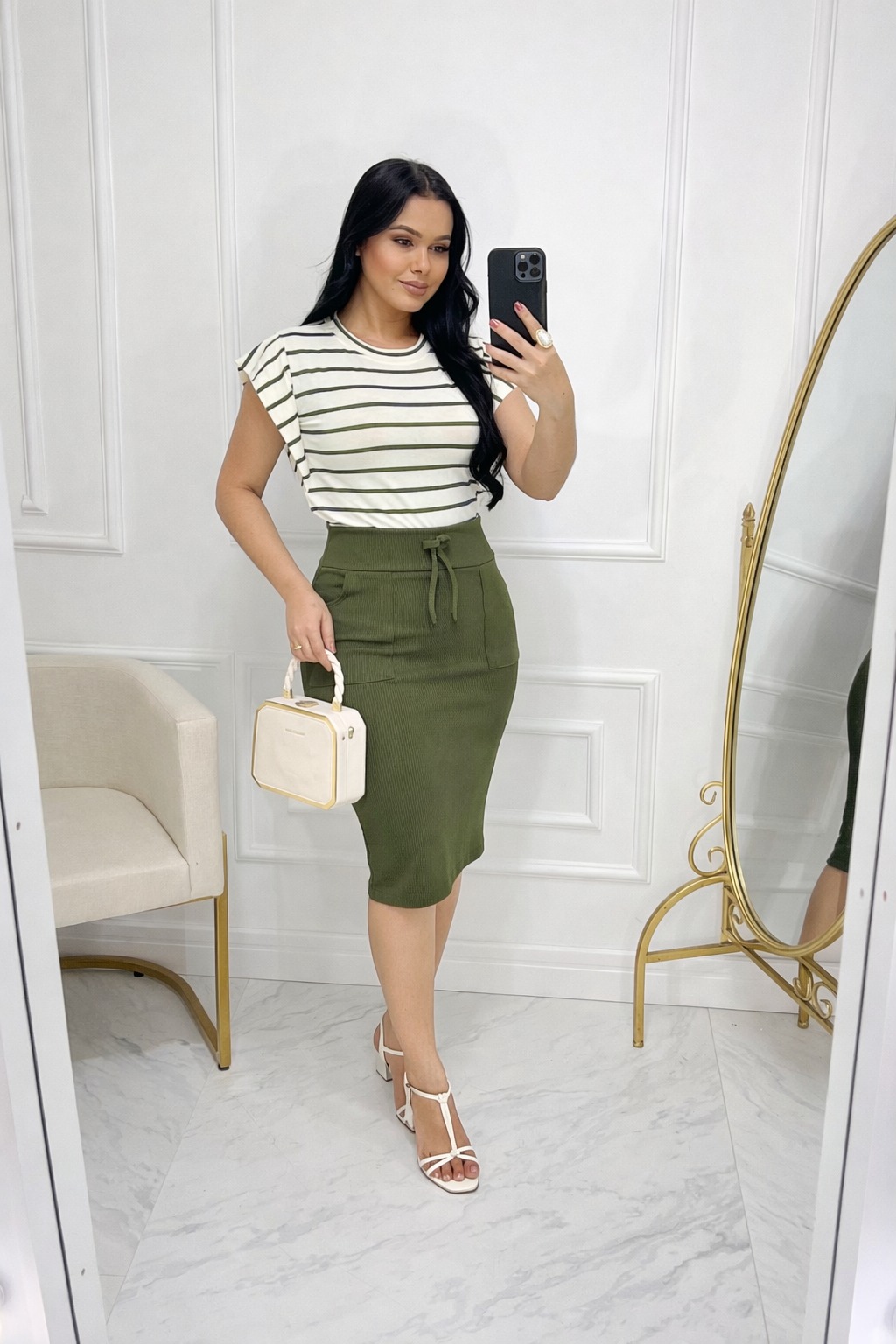 Conjunto Blusa+ Saia – verde militar