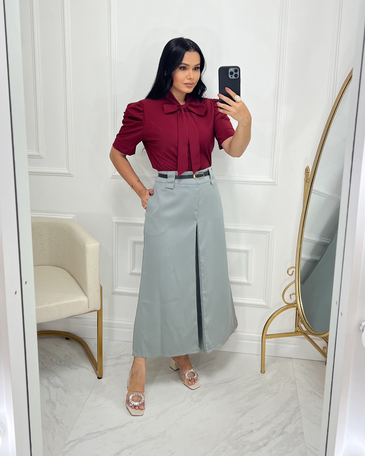 “Descubra a sofisticação atemporal da Saia Midi com cinto em tecido de Alfaiataria, uma peça que une elegância e conforto em um design refinado. Confeccionada com tecido de alfaiataria de alta qualidade, esta saia oferece um caimento impecável e uma sensação de luxo ao toque.