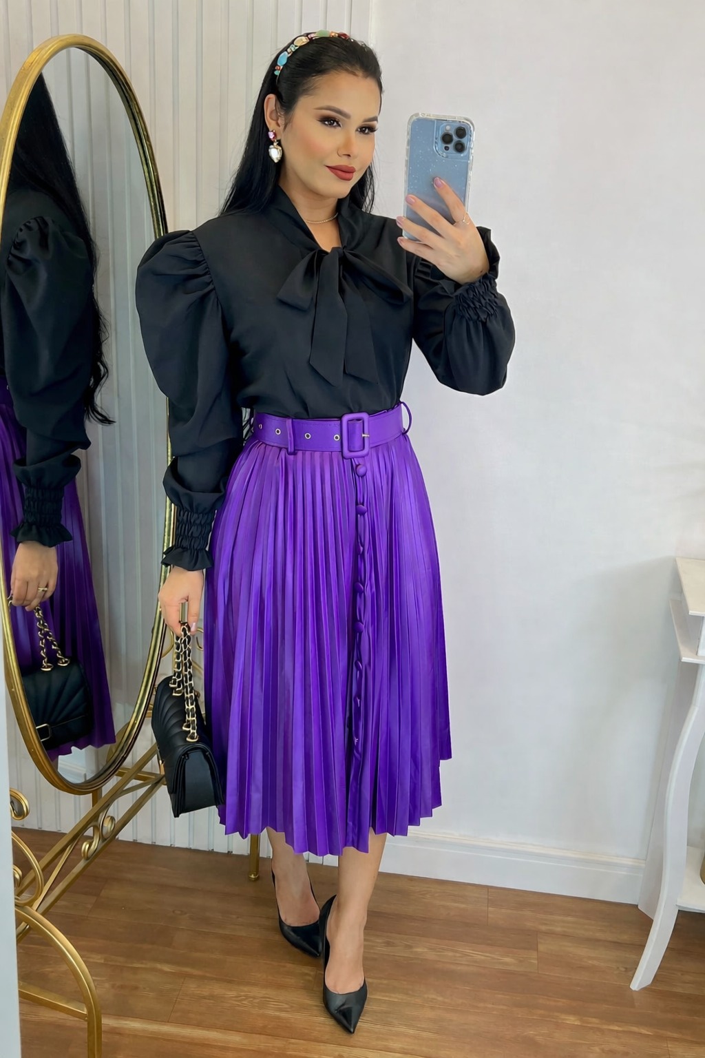 Saia em Tecido Cirrê com Cinto – Glamour e Estilo Incomparáveis